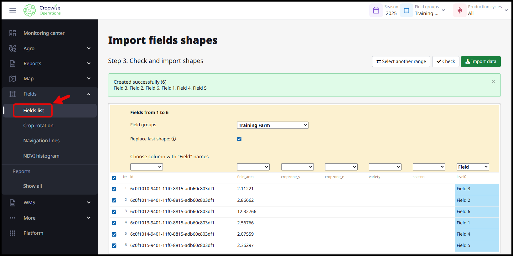 Now that the fields have been created successfully, you can select back on Fields > Fields List to review all fields that have been imported.