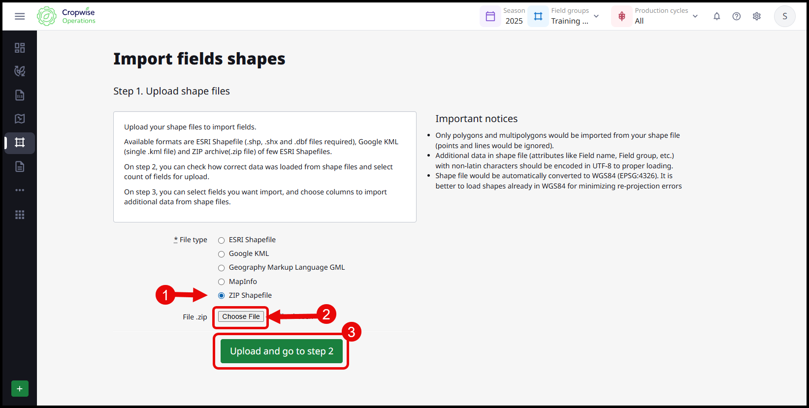 The below video and article explains how to import fields via a saved file on your machine, into Cropwise Operations.