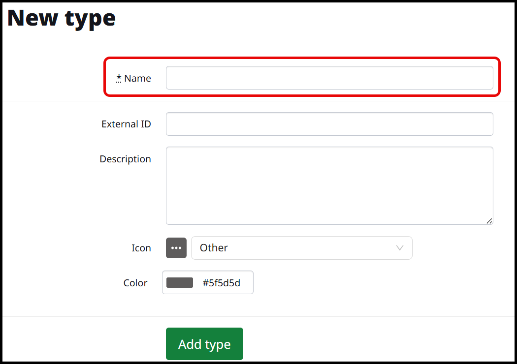 Making a new work type only requires the name. You can also customize by adding a color and icon to the group. Add type to complete.