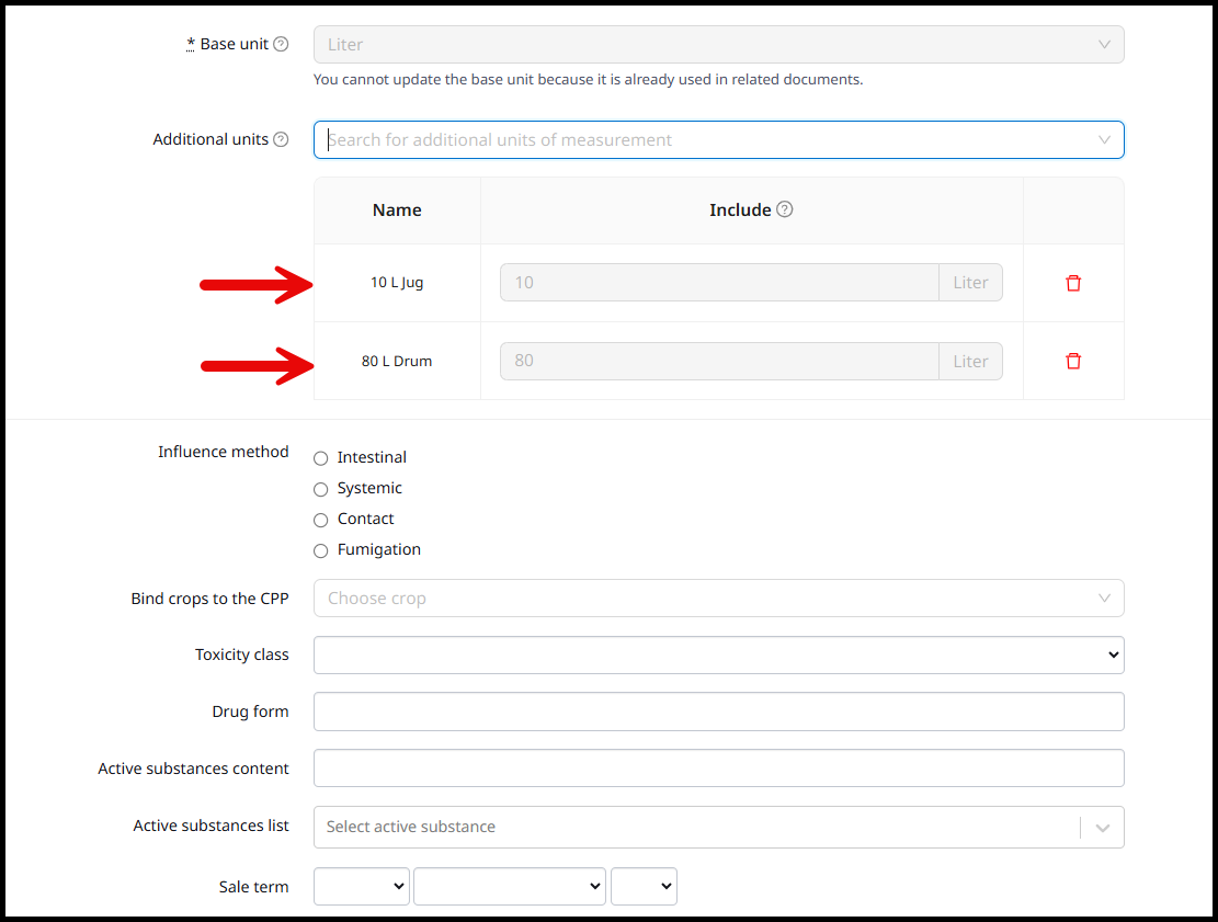 All information below Base unit is optional to record. To add more units of measurement to your account, see WMS- Adding Units.